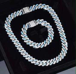 2-Pcs Iced Out 14K White Gold-Plated Light Blue & Silver Cubic Zirconia 20"/24" Cuban Chain Necklace & Bracelet Set$26Houston, TX
