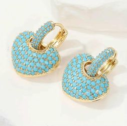 Exquisite Micro Pave 14K Gold Plated Turquoise Cubic Zirconia Heart Shaped Drop Earrings$18Houston, TX