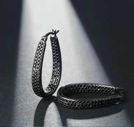 Exquisite Micro Pave Rhodium Plated Black Cubic Zirconia Dual Sided 33 mm Hoop Earrings$18Houston, TX