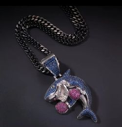 Exquisite Micro Pave 14K Gold Plated Purple Blue Cubic Zirconia Boxing Shark Pendant With 24" Rope Chain Necklace$25Houston, TX