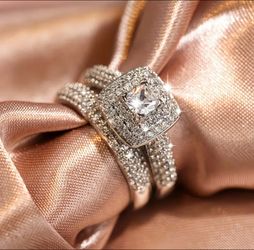 Stunning 2-Pcs Princess Cut 14K White Gold Plated Cubic Zirconia Ring Size 8$14Houston, TX