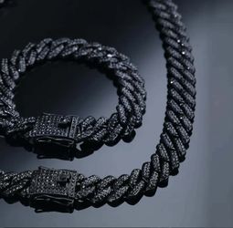 2-Pcs Iced Out Rhodium Plated Black Cubic Zirconia 20" Miami Cuban Chain Necklace & Bracelet Set$28Houston, TX