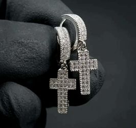 Exquisite Micro Pave 14K White Gold Plated Cubic Zirconia Cross Drop Dangle Men Women Earrings$18Houston, TX
