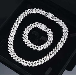 2-Pcs Iced Out 14K White Gold-Plated Cubic Zirconia 18"/30"/22"/24"/28" Cuban Chain Necklace & Bracelet Set$25Houston, TX