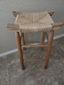 Wood Stool With Webbing Seat 27x12 And Seat 11x22, Clear Wood Can Be Stained Painted, $15.00 Sturdy$15Sun City, AZ