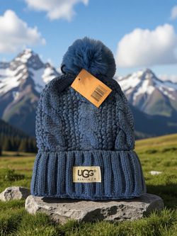 UGG Australia Cable Knit Blue Beanie With Faux Fur Pom-Pom Fleece Lining Logo$25Gallatin, TN