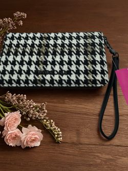Betsey Johnson Black & White Tweed Faux Leather Houndstooth Print ZA Wallet NWT$30Gallatin, TN