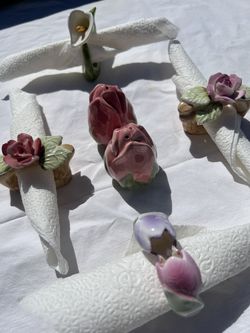 Pia Porcelain Hand Painted Floral Napkin Rings Set of 6 1980s Flower$30Jurupa Valley, CA