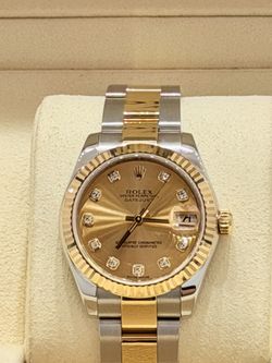 2015 Rolex Preowned Ladies 31mm DateJust Factory Champagne Diamond Dial Model 178273$12,995Baytown, TX