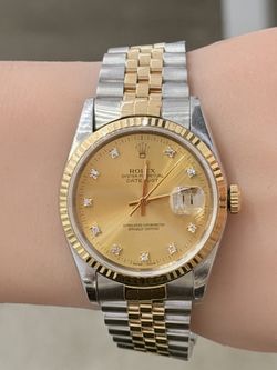 Rolex Preowned 36mm DateJust Factory Champagne Diamond Dial Model 16233$6,995Baytown, TX