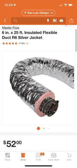 6” Flexible Duct (20’) Insulated$15San Luis Obispo, CA