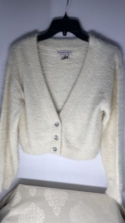 Fuzzy Cream Cropped Sweater Cardigan With Three Buttons, By Sincerely Jules$15Santa Fe Springs, CA