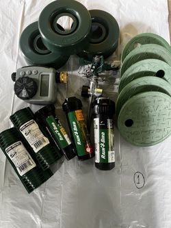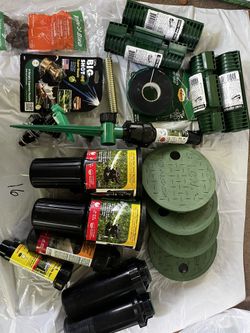 3 sprinkles, 2 cord protect, 1 hose faucet timer, 5 round valve box cover (7in) , 1 sprinkler base and 3 sprinkler guard donut. $39Atlanta, GA