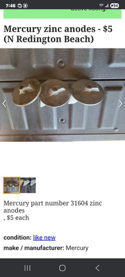 Mercury zinc anodes 31604$5Redington Shores, FL
