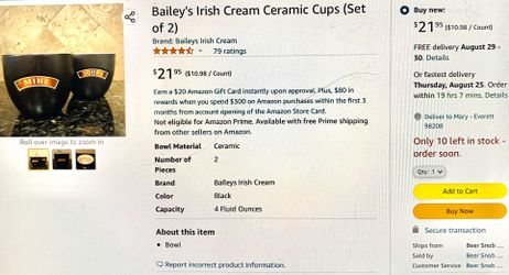 Baileys Ceramic Cups$5Everett, WA