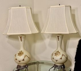 Pair of Opaline Glass Table Lamps – Hand-Painted Floral, Rewired, Silk Shades$120Everett, WA