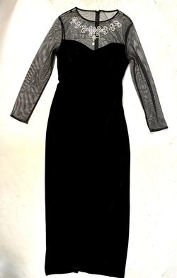 Vintage Eliza J Velour Black Maxi Dress With Shear Top & Sleeves With Rhinestones Size: 10$14New York, NY