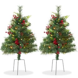 2 - 24in Outdoor Pathway Christmas Trees, Pinecones, Red Berries, Multi Greenery, White LED Lights$20San Antonio, TX