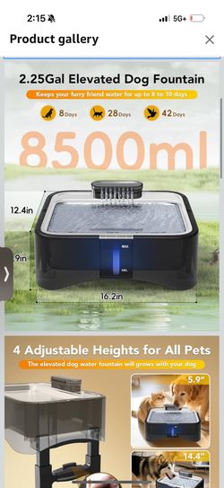 Elevated Dog Water Fountain, 4 Heights Adjustable Pet Fountain for All Dog Sizes, 304 Stainless Steel Tray Indoor Cat Drinking Dispenser with Ultra-Qu$30San Antonio, TX