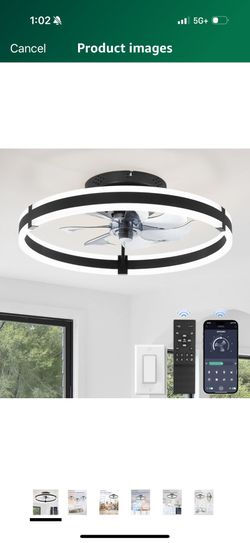 Ceiling Fans with Lights and Remote, 19.7'' Low Profile Ceiling Fan, 3000-6000K Dimmable Modern Flush Mount LED Fan Light, 6 Wind Speeds, Black Fandel$30San Antonio, TX