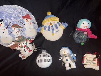 Snowman Christmas decorations- Candy jar, plate, ornaments- LOTP$20Tampa, FL