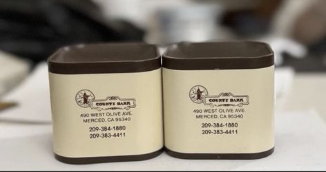 County Bank of Merced Desk Set- Paper Clip Holders & Small Desk Clock $12Stockton, CA