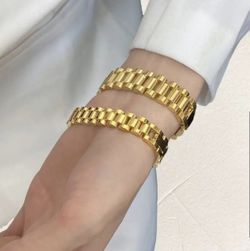 18k Gold Over Stainless Steel Rollie Bracelet $100Victorville, CA