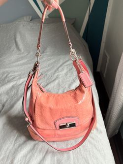 Coach Coral Pink Patent Leather Shoulder Bag with Adjustable Strap$90Pittsburgh, PA