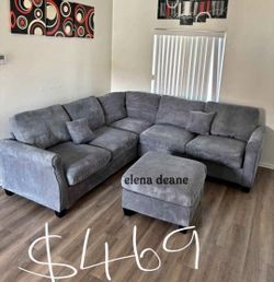 Gray Sectional Sofa With Ottoman 104x75 " New $250Corona, CA