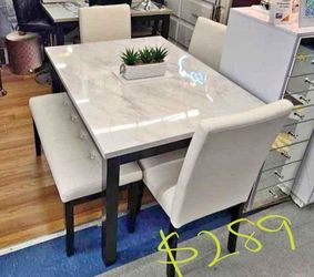 Solid Wood Marble Top Dining Table Set With 3 Chairs And Bench 48x36x30 "$289Lake Elsinore, CA