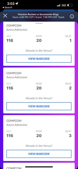 4 Rockets vs Kings tickets for tonights game $40 ea$40Houston, TX