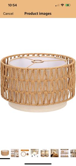 Boho Rattan Lamp Shade, 12.6" Top x 12.6" Bottom x 7.68" High, Natural Rattan & Linen Double Layer$25St. Petersburg, FL