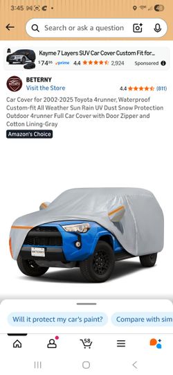 Toyota 4Runner All Weather Cover. Rain, Dust, Costum Fit For Years 2002 To 2025$42Santa Ana, CA
