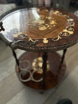 2 Tier Vintage Inlaid Woods Italian Made Rolling Cart On 4 Wheels With Handle . Located Boulder City Nv$600Boulder City, NV