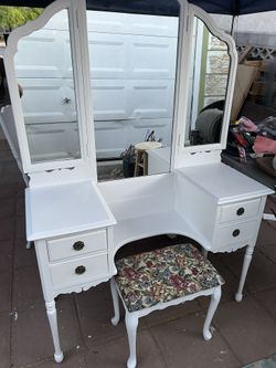 1920s Antique Trifold Mirror Vanity In Solid Wood Painted White$350Boulder City, NV