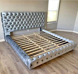 Gray Velvet Diamond King Size Platform Bed. Brand New. MATTRESS IS NOT INCLUDED.$599San Antonio, TX