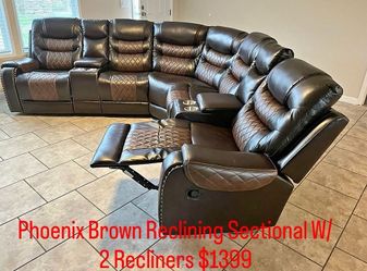 Phoenix Brown Reclining Sectional With 2 Recliners. Brand New.$1,399San Antonio, TX