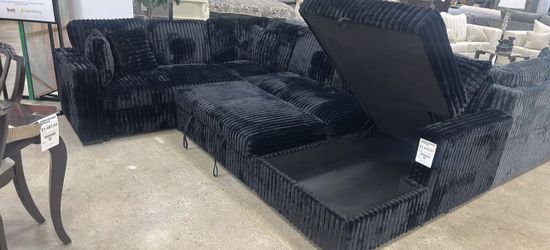 Raha Black Sectional with Storage and Pill-Out Bed. Brand New .$1,399San Antonio, TX