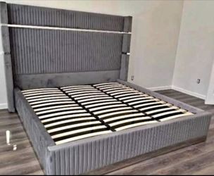 Aspen Gray Velvet King Size Patform Bed. Brand New. MATTRESS IS NOT INCLUDED .$799San Antonio, TX