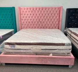 Pink Velvet Diamond Queen Size Bed With 6 FT Headboard. Brand New. MATTRESS SET IS NOT INCLUDED. $499San Antonio, TX