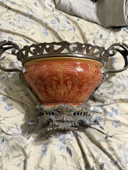 1895 Wong Lee Crackled Porcelain And Bronze Planter Bowl Vase $100Porterville, CA