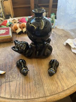 2 Avon Black Cat Perfume Bottles W/ JCPenney Playful Flower Cup!$20Porterville, CA