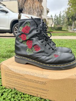 Black Dr. Martens 1460 boots with red rose embroidery$80Glendale, CA