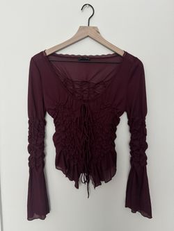 SoldZara Burgundy Mesh Ruffle Top$30Houston, TX