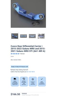 Cusco Rear Differential Carrier | 2015-2022 Subaru WRX and 2015- 2021 Subaru WRX STI$150San Diego, CA