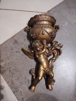 vintage 1970s gold-colored cherub or angel wall pocket planter, produced by the Universal Statuary Corporation.$40Houston, TX