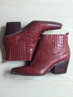 SAM EDELMAN Winona Red Croc-embossed Leather Western Ankle Bootie size 8$65Summerville, SC