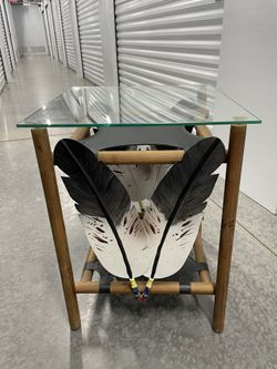 Rustic Feather Accent Table with Glass Top – 20”x20”x28”, Unique Design $40Gilbert, AZ
