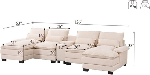 113" Modern U-Shaped Sectional Sofa Modern Lounge Sleeper o Couches with Large Back Cushions Two Pillows one Ottomans