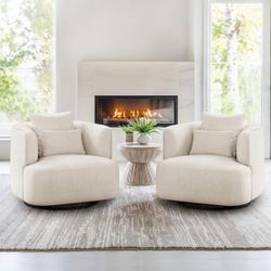 Set of 2 Upholstered Swivel Accent Chair with Curved Arm Chair Cozy Modern Swivel Living Room Chair,Oat Fabric $370Ontario, CA